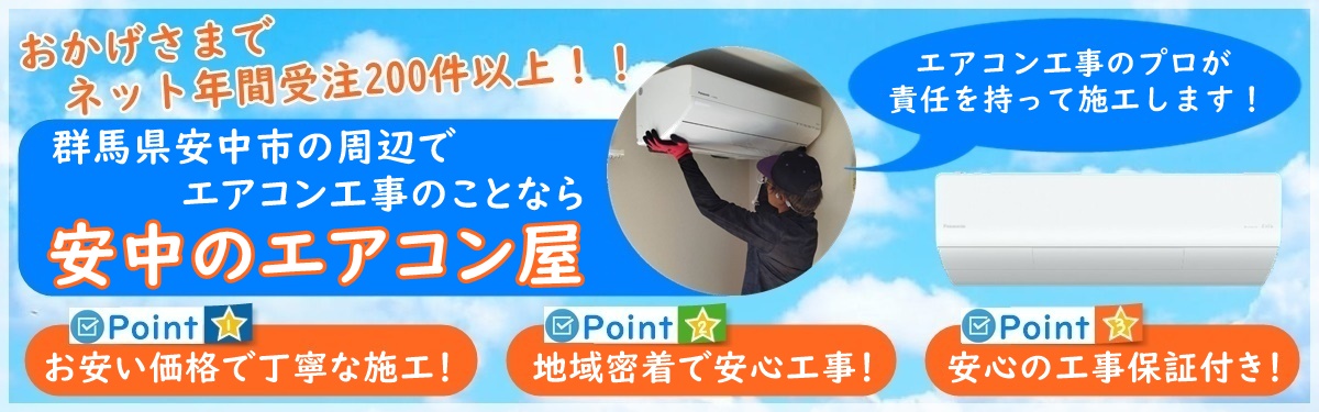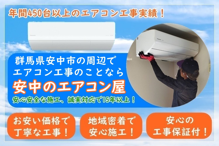 安中のエアコン屋は家庭用のエアコン工事を主にエアコン取り付け・取り外し工事をおこなっている地域密着のエアコン業者で、安中市を中心に群馬県で活動しております。